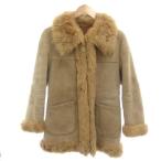 ノーブランド ムートンコート ファー 毛皮 裏ボア 40 ベージュ /YJ ■GY18 レディース