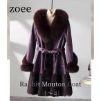 フォックスファー襟 ラビットファームートン コート ベルト付き レディース 秋/冬 アウター 毛皮 ダークブラウン/ライトブラウン L/2L/3L/4L/5L l1a24
