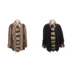 ノーブランド ラビットファーコート リバーシブル ジャケット 毛皮 ショート 黒 ブラック ベージュ /FF ■GY18