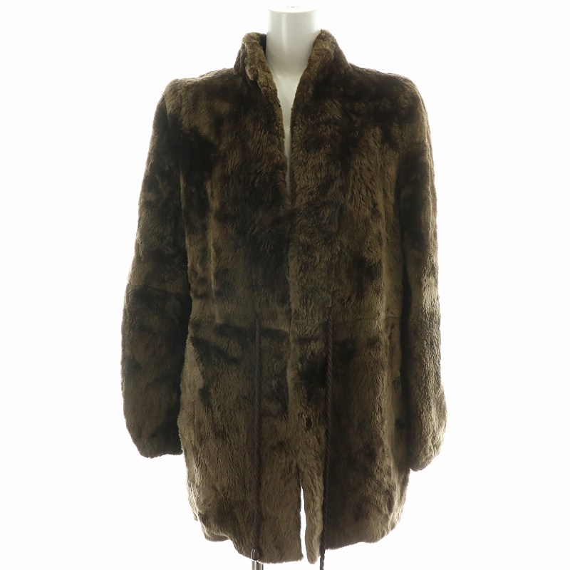 【中古】ファーコート ハーフ ミドル ラビット 毛皮 総裏地 11号 茶 ブラウン /MP ■GY11 レディース 【ベクトル 古着】 250506