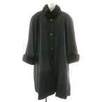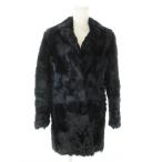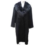 ラムファー ロングコート ジャケット 切替 衿フォックスファー 毛皮 11 約L 黒 ブラック IBO83 1114 レディース
