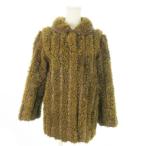 コート 毛皮 ラムファー ライナー フォックスファー襟 リアルファー アウター 袖中綿 M 9 ライトベージュ ブラウン 美品