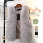 毛皮ベスト ファーベスト ロング 無地 上品 エコファー もこもこ オシャレ 冬 ふわふわ ファッション シンプル 通勤