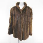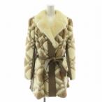 ノーブランド ファーコート 毛皮コート ミンク ハーフ レザー ベージュ 茶 ブラウン /MW ■GY11 レディース