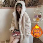 ファーコート レディース フェイクファー ピーコート 毛皮コート パーカー アウター 厚手 もこもこ 可愛いコート うさぎみみ 秋冬