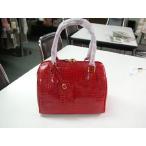 クロコダイル レザー プレートチャーム付 ハンドバッグ レッド