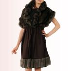 [5%offクーポン]ファーストール(ファー 毛皮)ロシアンセーブル編みこみフリルストール ブラウン