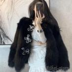 【スーパーSALE!10%OFF】ファーコート 毛皮コート レディース 保温 防風 レディースコート 高級 おしゃれ 上着 無地 ふわふわ もこもこ アウター ジャケット 暖かい 通勤 レディースアウター OL 防寒着 黒アウター 着痩せ 送料無料