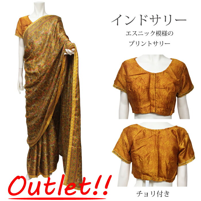 <アウトレット 難あり>サリー:黄土色 エスニック / Outlet 訳あり インド衣裳 民族衣装 インドサリー 結婚式 アジアンファッション エスニック デコレーション布