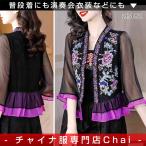 チャイナ服 トップス ★chaiは最大ポイント3倍★ 凝った刺繍 五分袖 袖口フリル 七分袖 民族衣装風 装飾トップス 普段着 二胡衣装 演奏会衣装 zh427