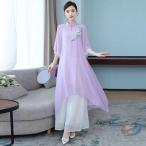 チャイナドレス chaiは★ポイント最大3倍 ワンピース Vネック ロング丈 チャイナワンピ チャイナ服 上品 普段着旗袍 衣装 普段着 民族風 zl270