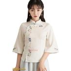 チャイナ シャツ ブラウス レディース チャイナ服 トップス 民族衣装 チャイナ民族服 中華服 茶服 チャイナ風 tシャツ チーパオ 長袖 綿麻 カットソー 花柄