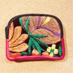 ポーチ パース ミニポーチ 小銭入れ 可愛い グァテマラ 花刺繍 手作り 中綿入り Sサイズ A模様 ブラウンの花