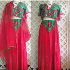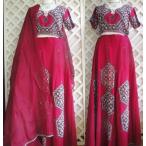 レディースパーティドレス レヘンガチョリ インド民族衣装 インド綿 レッド 結婚式やボリウッドムービー 野外フェスに