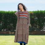 アフガン風刺繍+プリント前あきワンピース