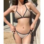 水着 配色ストリングデザイン ビキニウェア 温泉水着2点セット swim wear レディース