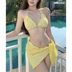 水着 水着 パレオ付きビキニ3点セット レディース