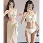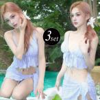 3点セット 水着 パレオ付き レディース 体型カバー バンドゥ セクシー ビキニ ワイヤー入り レース フリル パレオ付き 3角ビキニ 個性 上下セット 盛れる 小胸もピッタリ 大人可愛い かわいい パッド入り スイミング 温泉 ビーチ 韓国風 da180zezeg5