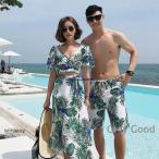 水着 レディース ビキニ 体型カバー水着 ショートパンツ パレオ 3点セット Vネック 半袖 ママ水着 20代 30代 40代 50代 男子水着
