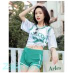 水着 レディース 3点セット 体型カバーリゾート パレオ 半袖 ショートパンツ おしゃれ 10代 20代 30代 40代
