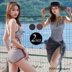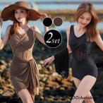 水着 「2点セット」 パレオ付き フロントビジュー モノキニ レディース