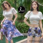 水着 レディース 体型カバー リゾート パレオ 3点セット おしゃれ かわいい オフショルダー 10代 20代 30代