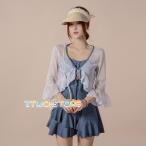 カップル 水着 体型カバー 水着 パレオ付き 水着 大人 可愛い カップル セパレート ビキニ 袖あり ビーチパンツ ハーフパンツ 3点セット オトナ女子 30代 20代 4