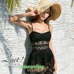 水着 ワンピース 2way レース モノキニ ビキニ レース 体型カバー シースルー 2点セット スカート パレオ 透け感 可愛い ビーチ 海 スイムウエア 大人