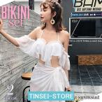 水着 レディース ビキニ オフショル ワイヤー入り カバー シフォン パレオ付き レディースビキニ 大きいサイズ mizugi ミズギ ビキニ【あすつく】