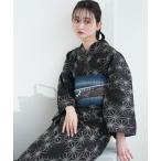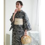 浴衣 浜松注染浴衣3点セット 綿麻×刺し子 錆鼠に渦 レディース