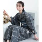 浴衣 浜松注染浴衣3点セット 綿麻×刺し子 錆鼠に蜘蛛の巣 レディース