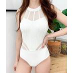 水着 シアー ドッキング ウエーブライン ホルター スイムウエア レディース