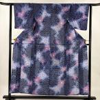 美品 浴衣 身丈158cm 裄丈62.5cm S 絞り浴衣 草花 紺色 綿 名品 中古