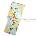 (Prices down2)浴衣 レディース 女性浴衣単品「薄黄 あじさいと薔薇」 綿麻(メール便不可)ss2603ykl35