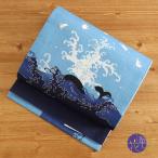 半幅帯 浴衣帯 ゆかた帯 桐生織 水色 瑠璃色 うさぎ ウサギ 地球 月 宇宙 星 流れ星 矢羽根 おちきゅうみ ポリエステル リバー No.10-5443