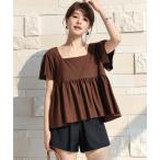 水着 「3点セット/大きいサイズ有」旬の上下バイカラー配色。半袖スクエアネックペプラム風ブラ一体型トップス+ショーツ+ショートパンツ レディース水着