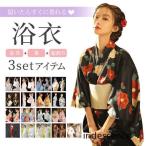浴衣セット プチプラ 浴衣 3点セット レディース 帯 下駄 兵児帯 セット ニュアンス 牡丹 椿 鈴蘭 紫陽花 金魚 ストライプ 小花 水彩 女性 大人 中学生 高校生 おしゃれ 人気 S フリー 翌日配送 創美苑 送料無料