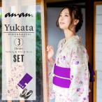 浴衣 セット レディース 浴衣セット 半幅帯大人 3点セット 金子みすゞ みすゞうた このみち パープルグレー 紫系 クリーム フリー 送料無料