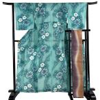 浴衣 身丈160.5cm 裄丈64cm M 絞り浴衣 浴衣セット 朝顔 青緑 綿 名品 中古