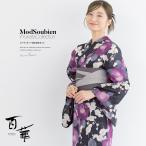 浴衣 レディース 浴衣セット 夏 大人 F 半幅帯 3点 黒 紫 白 梅 百華 下駄 レディース浴衣 女性 ゆかた ユカタ yukata モダン レトロ 創美苑