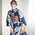 浴衣 レディース セット utatane×注染工房 浴衣3点セット 藍色に万華鏡 注染 にじみ フリーサイズ 浴衣セット(ゆかた・帯・下駄)ですぐお出かけ レトロ