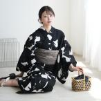 浴衣 セット レディース 大人 兵児帯 夏 2点セット 浴衣セット 兵児帯 モノトーン 黒花 レディース浴衣 ゆかた ユカタ yukata モダン レトロ 花火大会 フリー