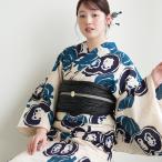 浴衣 レディース セット utatane × 注染工房 特選 注染浴衣3点セット 先染めベージュ 南瓜 青紺 フリーサイズ 日本製小幅生地使用 浴衣・帯・下駄