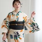 浴衣 レディース セット utatane × 注染工房 特選 注染浴衣3点セット 先染めベージュ 山吹と緑ののびやかな菊 フリーサイズ 浴衣・帯・下駄