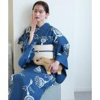 浴衣 レディース セット utatane×注染工房 浴衣3点セット きなりにグレーの網と海老たこ にじみ 手染め フリーサイズ 浴衣セット(ゆかた・帯・下駄)