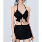 水着 「3点セット」フロントオープン ホルターネック スカート付き ビキニ 水着 レディース