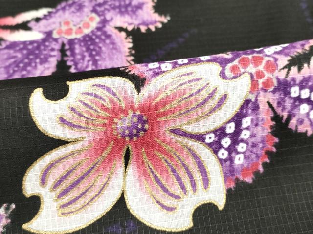 平和屋着物∴夏物 浴衣 綿紅梅 トンボ 舞花文 黒地 ロング丈 綿 逸品 DAAV7299cd