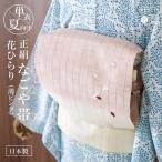 [はんなり古風♪] 夏名古屋帯 花ひらり (絹/薄ピンク) 絹 シルク 京袋帯 名古屋帯 名古屋仕立て 仕立て上がり 桜 花びら 格子 夏帯 着物帯 浴衣帯 嵐山よしむら