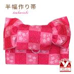 【爆買いWEEKセール】 半幅帯 作り帯 着物 リボン返し結び帯 合繊「赤xピンク、市松に桜」THM871
