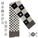 半幅帯 正絹 博多織 リバーシブル 浴衣帯 紋小巾袋帯 黒 白 市松 水玉 カジュアル 受賞作品 お取り寄せ 受注生産 No.88-3081